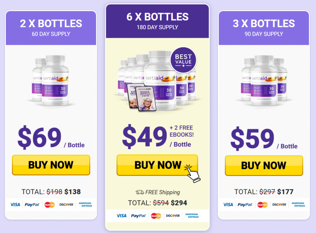 At this moment you can order Vertiaid supplement for 50% OFF + FREE Shipping. This is a Limited-Time Offer and it won’t be available for long.